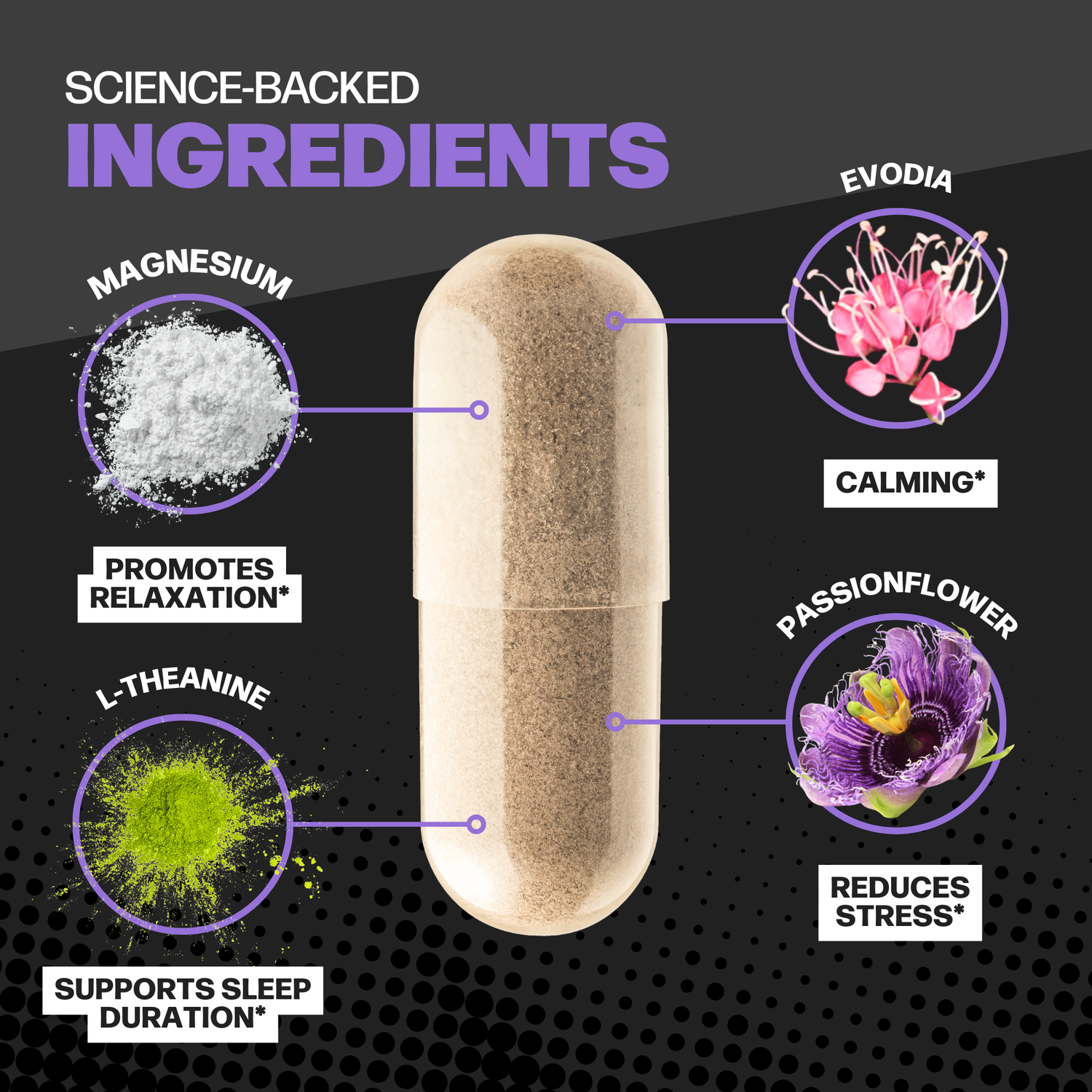 DO NOT DISTURB is a triple-magnesium blend that supports natural, melatonin-free sleep. L-theanine and Evodia help ease restlessness and promote calm so you can wake up refreshed.*